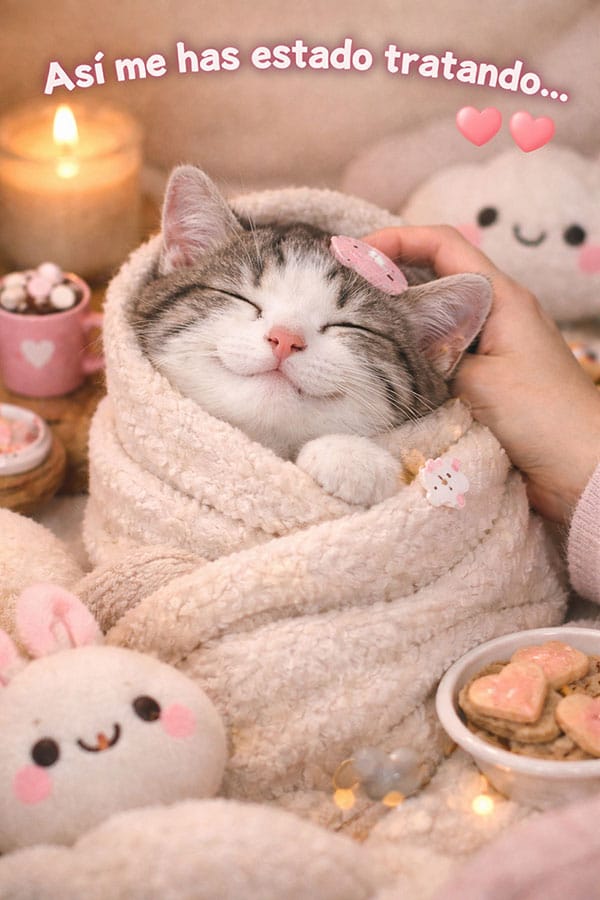 En una de las respuestas, un gatito arropado, rodeado de objetos cálidos, como si estuviera siendo cuidado. En otra, un usuario descansando en una hamaca mientras la IA lo acompañaba con un mensaje amable de agradecimiento.